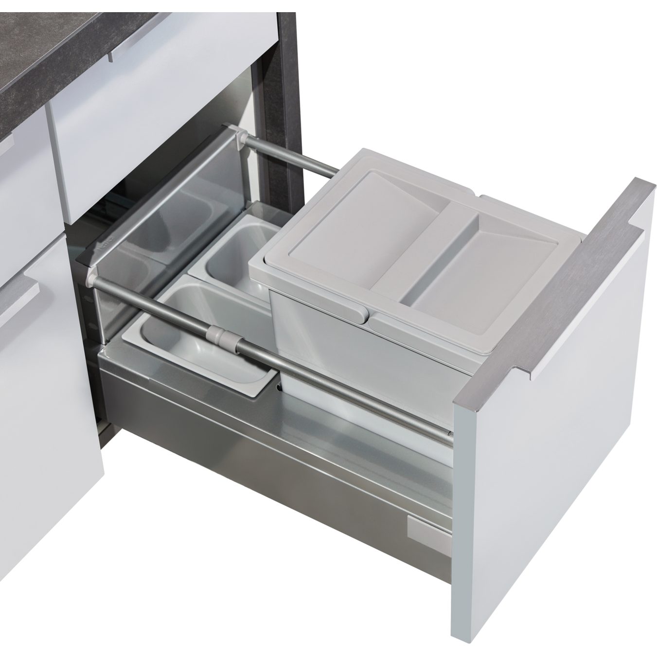 Deze hoogwaardige inbouw-afvalbak Separato van de fabrikant Hailo uit het nobilia Elements Bad assortiment is passend voor badkamer-uittrek-kasten met een hoogte van 22 cm.