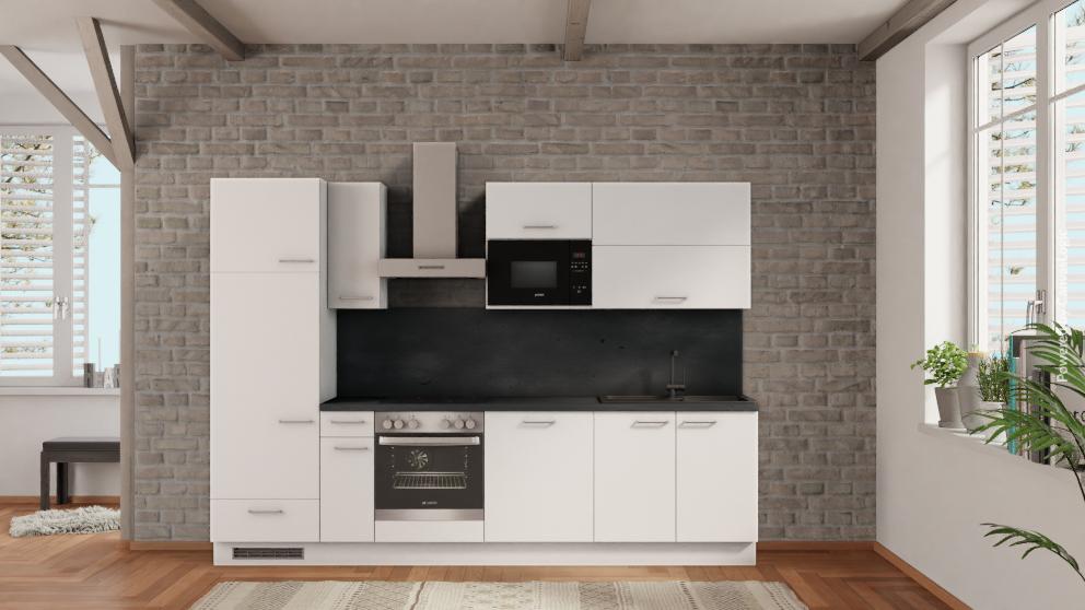 nobilia keuken Augsburg uitverkoop beton leigrijs complete keuken | keuken 300 cm breed | nobilia keukenblok in wit voordelig uit het nobilia Elements assortiment | 2,15m hoog  | Keuken zonder koelkast | Keuken met kookplaat | Keuken zonder vaatwasser | Keuken zonder oven