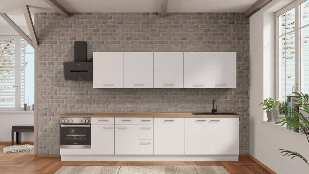 Keuken 345 cm breed | nobilia keukenblok in wit voordelig uit het nobilia Elements assortiment | 2,15m hoog  | Keuken zonder koelkast | Keuken zonder oven | Keuken met kookveld | Grote keuken zonder vaatwasser | Complete keuken