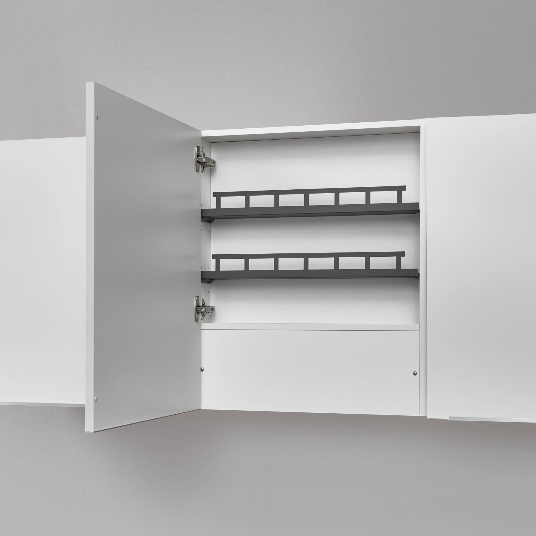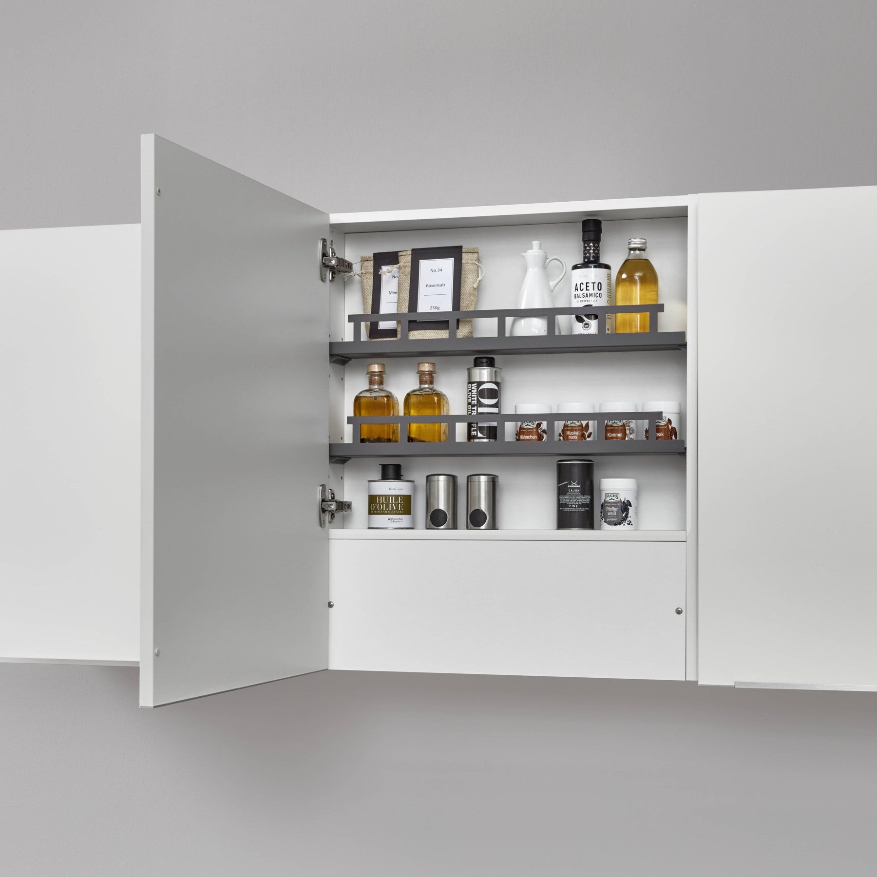 Het aantal metalen legplanken is afhankelijk van de inbouwmaat van uw afzuigkap, zodat u de kast volledig naar uw wensen kunt aanpassen. Met een hoogte van 720 mm past deze wandkast perfect in elke keuken en zorgt hij voor een optimale ruimtebenutting.