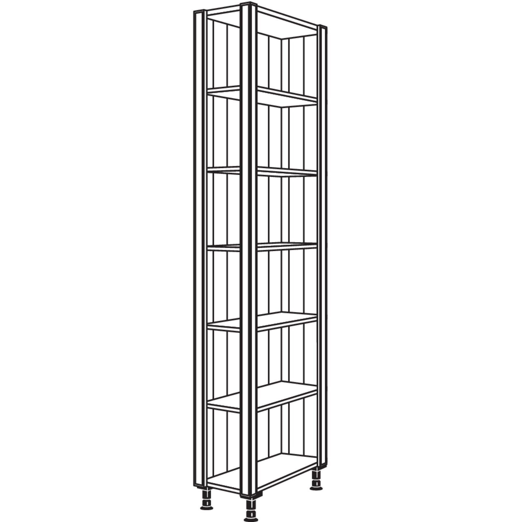 Die Seiten- und Rückwand des Regals sind furniert und mit einer ansprechenden Rillenstruktur versehen. Mit einer Tiefe von 583 mm und einer Breite von 323 mm passt das Abschlussregal perfekt in jede Küchenecke.