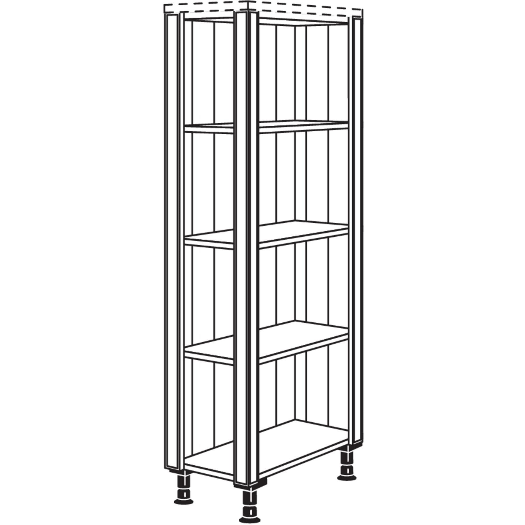 Bitte beachten Sie, dass das Pilaster 4 Abschlussregal nicht frei geplant werden kann und mit benachbarten Schränken verbaut werden muss. Geben Sie bitte den Anschlag an, um sicherzustellen, dass das Regal perfekt in Ihre Küche passt.