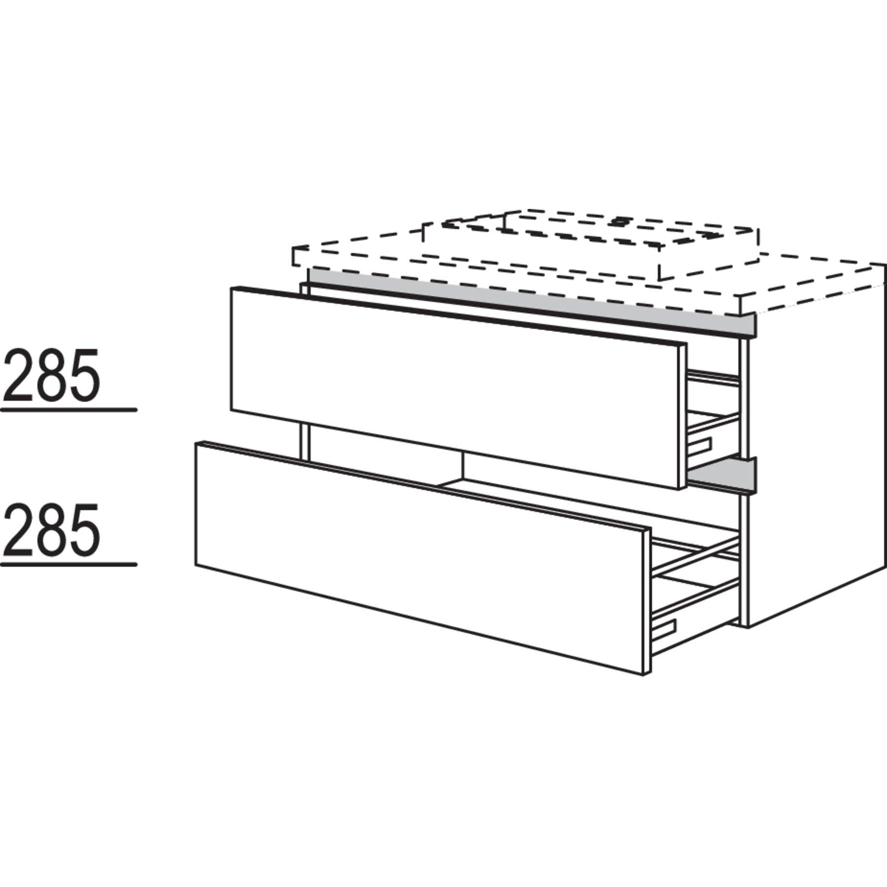 Der nobilia Waschtischschrank ist mit einer Innenblende und einem Schubkasten ausgestattet, der dank der hochwertigen Auszugsdämpfung mit Soft-Close Funktion von Hettich ein sanftes und leises Schließen garantiert. Die Auszugsblende mit Holzrückwand bietet zudem Platz für bauseitige Siphon-Aussparungen, was die Installation erleichtert und für eine saubere Optik sorgt. Ein weiterer Auszug, ebenfalls mit Vollauszügen und dem Silent System / Soft-Close ausgestattet, bietet zusätzlichen Stauraum und Komfort.