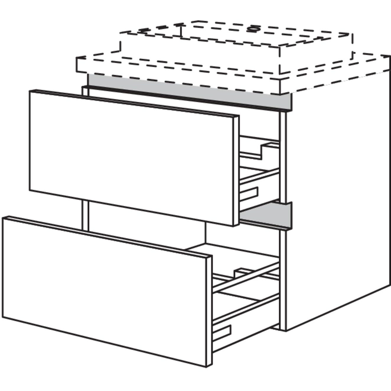 Der nobilia Waschtischschrank ist mit einer Innenblende und einem Schubkasten ausgestattet, der dank der hochwertigen Auszugsdämpfung mit Soft-Close Funktion von Hettich ein sanftes und leises Schließen garantiert. Die Auszugsblende mit Holzrückwand bietet zudem Platz für bauseitige Siphon-Aussparungen, was die Installation erleichtert und für eine saubere Optik sorgt. Ein weiterer Auszug, ebenfalls mit Vollauszügen und dem Silent System / Soft-Close ausgestattet, bietet zusätzlichen Stauraum und Komfort.