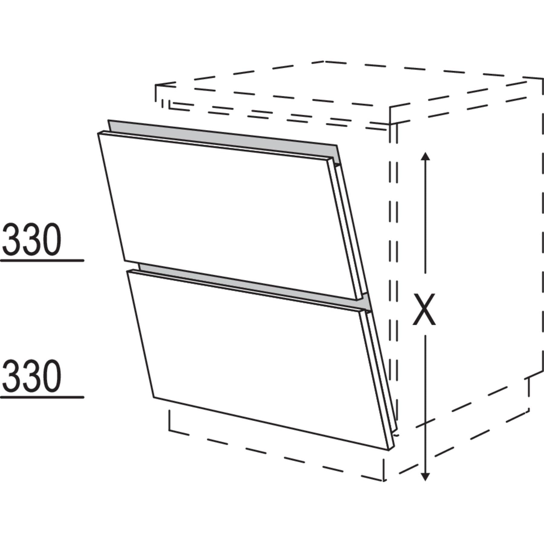 Um sicherzustellen, dass die Türfront perfekt in Ihre Küchenzeile passt, sollte diese um 15 mm vorgezogen geplant werden. Bitte beachten Sie, dass bei Planungen am Zeilenende eine Wange erforderlich ist und Frontwangen nicht möglich sind. Die Türfront ist für Geräte mit einer Höhe von 805 - 820 mm planbar ab einer Sockelhöhe von 100 mm bei Geräten von Miele, Beko, Grundig und Electrolux. Für Geräte mit einer Höhe von 845 - 865 mm ist die Planung ab einer Sockelhöhe von 150 mm möglich, ausgenommen sind Geräte mit Frontverschiebetechnik von BSH.