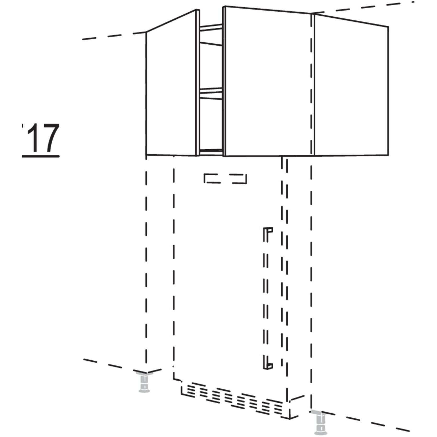 Mit einem Einlegeboden bietet dieser Wandschrank ausreichend Stauraum für Ihre Küchenutensilien. Der Korpusunterboden in Weiß verleiht dem Schrank ein modernes und zeitloses Design, das sich nahtlos in jede Kücheneinrichtung einfügt.